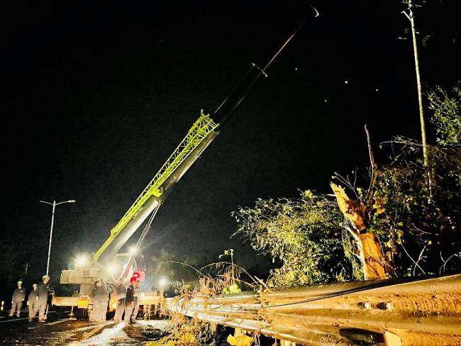 到達(dá)海南后,揭陽明利綜合能源發(fā)展有限公司支援海南抗災(zāi)搶險隊在澄邁縣緊鑼密鼓開展搶修復(fù)電工作。澄邁地貌相對平整,但林區(qū)覆蓋率較高,橡膠林香蕉園廣泛分布,臺風(fēng)摩羯過境后,林區(qū)樹木倒塌壓垮電線,線路損壞嚴(yán)重。為打通線路搶修通道,加快復(fù)電進度,公司搶險隊伍一邊組織大型施工機械快速重新組立電桿,一邊組織人員及時消缺搶修,力爭以最快速度恢復(fù)線路正常供電。